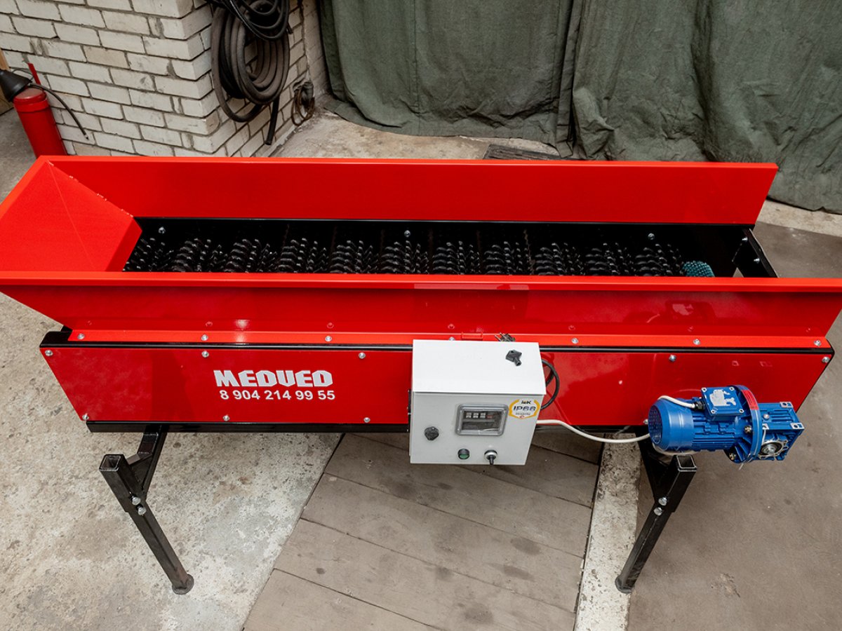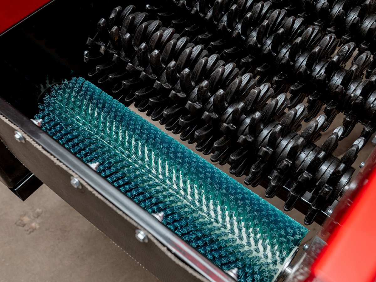 Позволяет произвести первую грубую механическую очистку чеснока от остатков грунта/камней и ручное удаление некачественных головок сразу после поступления чеснока с поля на склад перед его сушкой и хранением. 4 ряда щеток для бережной очистки чеснока – никаких ударов и потерь!